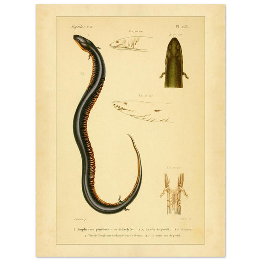 Reproduction Amphiume pénétrante et Amphiume à trois doigts : illustration d'herpétologie