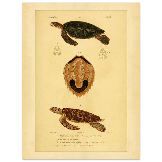 Reproduction Chélonée marbrée et Chélonée imbriquée : illustration ancienne de tortues