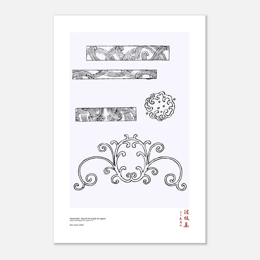 Illustration décorative de flots en arabesques - extrait du Hamonshū de Mori Yūzan
