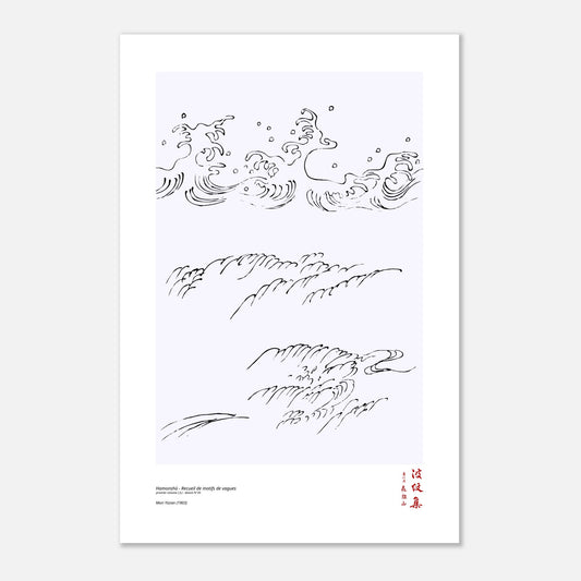 Faites entrer la poésie de l’art japonais dans votre espace avec cette reproduction du motif N°35 tirée du premier volume (上) du Hamonshū, le célèbre recueil de motifs réalisé en 1903 par Mori Yūzan. Le titre (波紋集), qui peut être traduit par « Recueil de motifs de vagues », met en avant un thème universel : la fluidité et l’harmonie des formes inspirées de l’eau. Destiné à guider les artisans, ce recueil regorge de compositions variées, allant de vagues abstraites à des paysages stylisés, toujours empreintes de sensibilité et de raffinement.