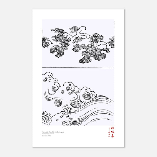 Illustration décorative de ressac harmonieux - Un motif élégant et apaisant extrait du Hamonshū de Mori Yūzan
