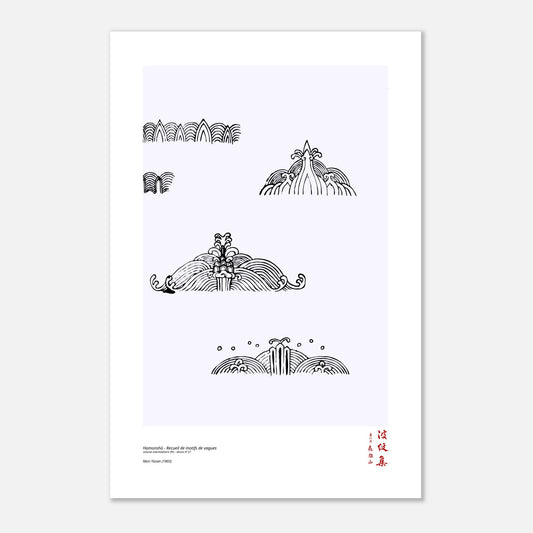 Découvrez l’art raffiné de l’époque japonaise moderne avec cette reproduction du dessin N°27 issue du volume intermédiaire (中) du Hamonshū, un recueil réalisé en 1903 par Mori Yūzan. Le titre original (波紋集), qui signifie « Recueil de motifs de vagues », célèbre la beauté universelle des formes ondulantes, inspirées de l’eau et du mouvement. Conçu pour inspirer les artisans japonais, cet ouvrage propose des compositions qui oscillent entre abstraction, évocations paysagères et motifs poétiques.