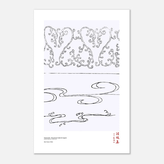 Sublimez votre intérieur avec cette reproduction du dessin N°49 tirée du premier volume (上) du Hamonshū, un recueil iconique réalisé en 1903 par Mori Yūzan. Intitulé en japonais (波紋集), « Recueil de motifs de vagues », cet ouvrage met en lumière un thème central : le mouvement fluide et harmonieux des formes inspirées de l’eau. Guidant les artisans dans leur quête d’ornementation, cet ouvrage propose une collection de motifs uniques, mêlant abstraction, évocations paysagères et compositions poétiques.