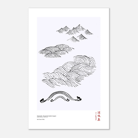 Sublimez votre intérieur avec cette reproduction du dessin N°29 tirée du premier volume (上) du Hamonshū, un recueil iconique réalisé en 1903 par Mori Yūzan. Intitulé en japonais (波紋集), « Recueil de motifs de vagues », cet ouvrage met en lumière un thème central : le mouvement fluide et harmonieux des formes inspirées de l’eau. Guidant les artisans dans leur quête d’ornementation, cet ouvrage propose une collection de motifs uniques, mêlant abstraction, évocations paysagères et compositions poétiques.