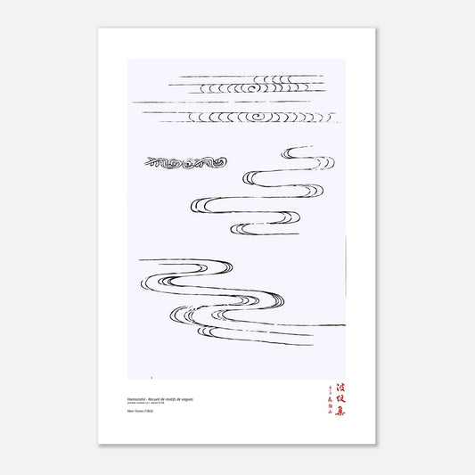 Sublimez votre intérieur avec cette reproduction du dessin N°46 tirée du premier volume (上) du Hamonshū, un recueil iconique réalisé en 1903 par Mori Yūzan. Intitulé en japonais (波紋集), « Recueil de motifs de vagues », cet ouvrage met en lumière un thème central : le mouvement fluide et harmonieux des formes inspirées de l’eau. Guidant les artisans dans leur quête d’ornementation, cet ouvrage propose une collection de motifs uniques, mêlant abstraction, évocations paysagères et compositions poétiques.
