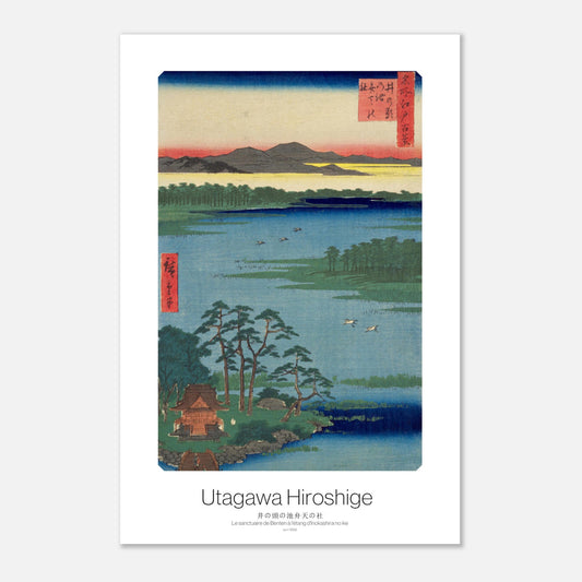 Illustration japonaise Un voyage visuel à travers les paysages emblématiques du Japon - Le sanctuaire de Benten à l'étang d'Inokashira no ike de Hiroshige