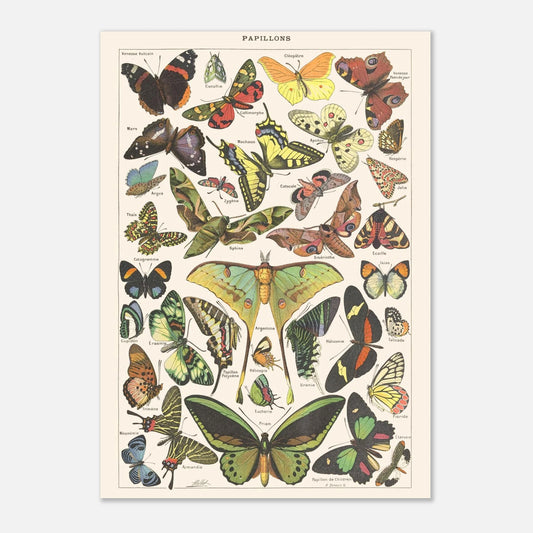 Découvrez cette planche ancienne consacrée aux papillons, tirée de l’Encyclopédie Larousse pour tous publiée en 1910. Elle met en avant une multitude d’espèces délicates et colorées, parmi lesquelles Sphinx, Thais, Argus, Eucanie, Cléopâtre et autres Uranies, illustrées avec un soin minutieux et un rendu naturaliste exceptionnel. Les détails des ailes et des motifs rendent hommage à la finesse de l’observation scientifique de l’époque.