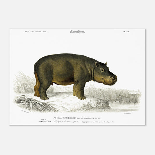 Image pédagogique naturelle, idéale pour une décoration élégante et naturelle - Hippopotame amphibie par Charles d'Orbigny