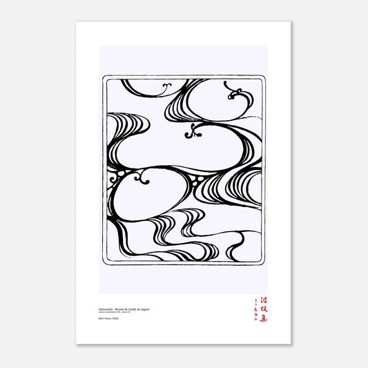Découvrez l’art raffiné de l’époque japonaise moderne avec cette reproduction du dessin N°2 issue du volume intermédiaire (中) du Hamonshū, un recueil réalisé en 1903 par Mori Yūzan. Le titre original (波紋集), qui signifie « Recueil de motifs de vagues », célèbre la beauté universelle des formes ondulantes, inspirées de l’eau et du mouvement. Conçu pour inspirer les artisans japonais, cet ouvrage propose des compositions qui oscillent entre abstraction, évocations paysagères et motifs poétiques.
