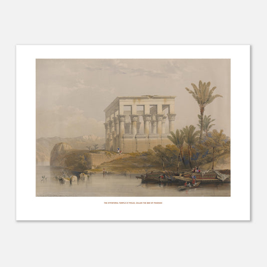 À l'intérieur, l'absence de corniche et de structures adjacentes suggère que ce temple pouvait avoir une fonction indépendante, peut-être même comme lieu de sépulture d'Osiris, selon les traditions égyptiennes. David Roberts, dont les gravures illustrent avec brio ce monument, a capturé la majesté de ce temple sans toit, offrant une vue imprenable des étoiles la nuit, qui enchantent les visiteurs modernes tout autant que les anciens. Parfait pour enrichir une collection d’art ou décorer un espace avec une touche de grandeur antique, ce temple reste un témoignage fascinant de la splendeur égyptienne.