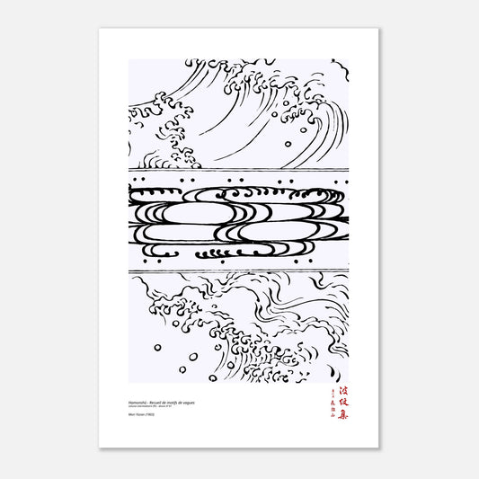 Sublimez votre intérieur avec cette reproduction du dessin N°41 tirée du volume intermédiaire (中) du Hamonshū, un recueil iconique réalisé en 1903 par Mori Yūzan. Intitulé en japonais (波紋集), « Recueil de motifs de vagues », cet ouvrage met en lumière un thème central : le mouvement fluide et harmonieux des formes inspirées de l’eau. Guidant les artisans dans leur quête d’ornementation, cet ouvrage propose une collection de motifs uniques, mêlant abstraction, évocations paysagères et compositions poétiques.
