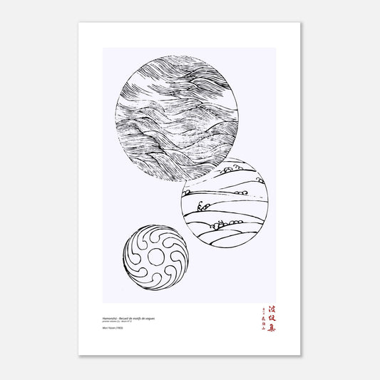 Découvrez l’art raffiné de l’époque japonaise moderne avec cette reproduction du dessin N°12 issue du premier volume (上) du Hamonshū, un recueil réalisé en 1903 par Mori Yūzan. Le titre original (波紋集), qui signifie « Recueil de motifs de vagues », célèbre la beauté universelle des formes ondulantes, inspirées de l’eau et du mouvement. Conçu pour inspirer les artisans japonais, cet ouvrage propose des compositions qui oscillent entre abstraction, évocations paysagères et motifs poétiques.