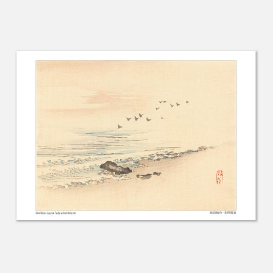 « Lueur de l'aube au bord de la mer » (titre original: 海辺暁色) est une estampe du peintre et illustrateur japonais Kōno Bairei (1844-1895).