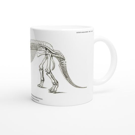 Imaginez-vous remonter dans le temps avec ce mug mettant en scène un squelette de tricératops, dans un style qui évoque les illustrations naturalistes du 19ème siècle. Parfait pour ajouter une touche de fascination préhistorique à votre routine café ou thé, ce mug transporte vos pensées vers un monde oublié depuis longtemps.
