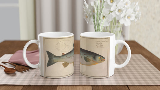Ce mug est décoré d'une reproduction d'une planche naturaliste issue de l'ouvrage Ichtyologie, ou, Histoire naturelle, générale et particulière des poissons : avec des figures enluminées, dessinées d'après nature par Marcus Elieser Bloch (1723-1799) et publié entre 1785 et 1797.