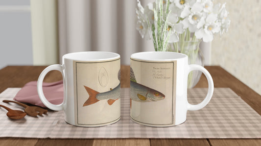 Ce mug est décoré d'une reproduction d'une planche naturaliste issue de l'ouvrage Ichtyologie, ou, Histoire naturelle, générale et particulière des poissons : avec des figures enluminées, dessinées d'après nature par Marcus Elieser Bloch (1723-1799) et publié entre 1785 et 1797.