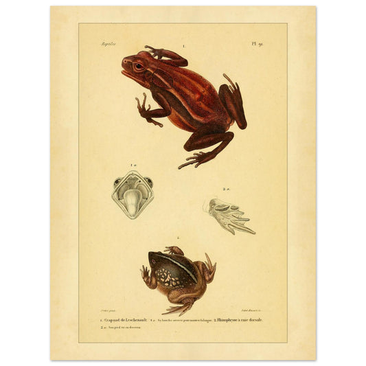 Cette reproduction est destinée aux passionnés d'amphibiens, aux collectionneurs d'illustrations scientifiques ou à ceux qui souhaitent décorer leur intérieur avec une pièce empreinte d'histoire naturelle et de savoir.