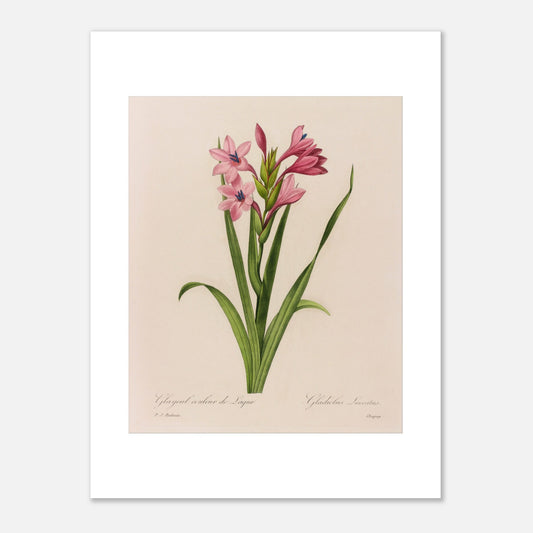 Planche naturaliste Glaïeul Couleur de Laque par Pierre-Joseph Redouté