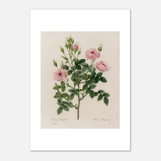 Planche naturaliste Rosier Pompon par Pierre-Joseph Redouté