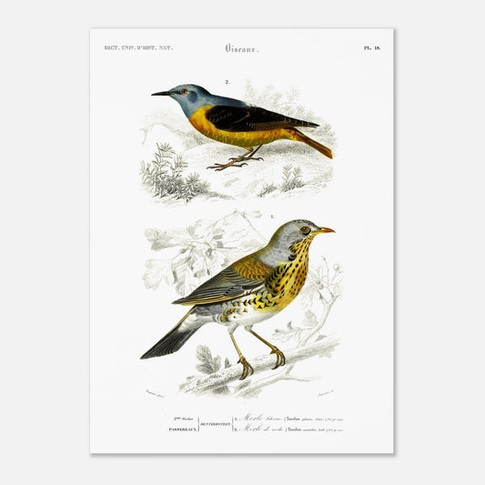 Planche scientifique ancienne, idéale pour une atmosphère apaisante et érudite - Merle litorne par Charles d'Orbigny