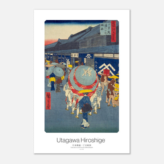 Poster d'art japonais Rendant hommage à l'éphémérité de la nature japonaise - Vue de la rue Itchome à Nihonbashi de Hiroshige