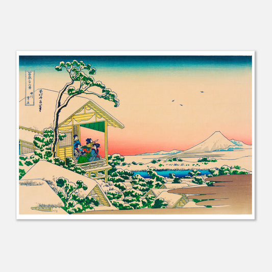 Poster d'art japonais représentant la sérénité et l'équilibre des paysages japonais - Maison de thé à Koishikawa par Katsushika Hokusai