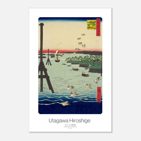 Poster d'art japonais Représentant la sérénité et l'équilibre des paysages japonais - Vue de la côte de Shiba de Hiroshige