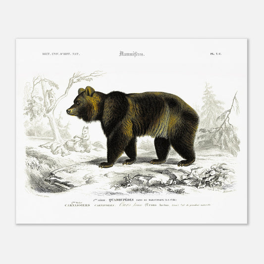 Poster d'art scientifique ancien, une décoration qui mêle beauté et savoir naturel - Ours brun par Charles d'Orbigny