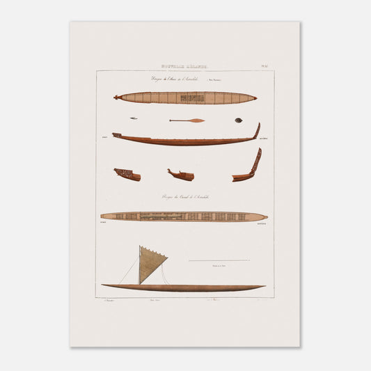 Plans Historiques des Pirogues de l'Anse et du Canal de l'Astrolabe en Nouvelle Zélande - Collection Maritime