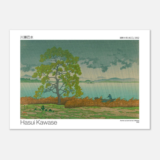 Poster Shin-hanga dans la tradition des grands maîtres ukiyo-e - Averse au bord du lac à Matsue par Hasui Kawase