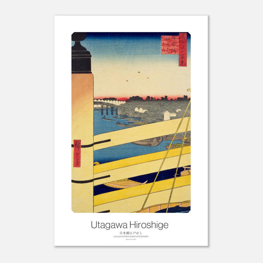 Poster ukiyo-e Illustrant la beauté paisible et raffinée de la nature japonaise - Les ponts Nihonbashi et Edobashi de Hiroshige