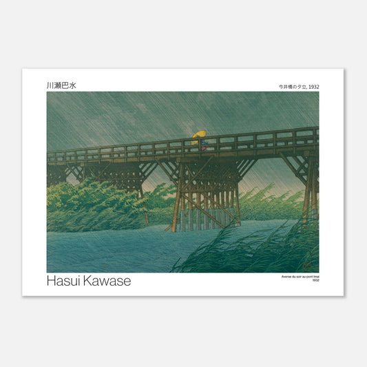 Poster vue pittoresque immortalisant la beauté des quatre saisons japonaises - Averse du soir au pont Imai par Hasui Kawase
