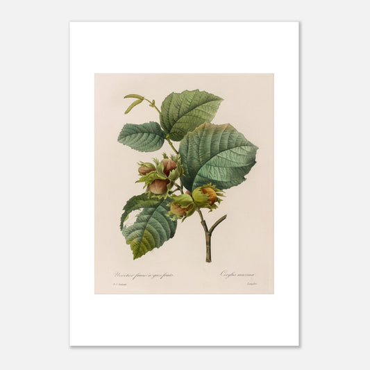 Reproduction d'illustration naturaliste Noisetier Franc à Gros Fruits par Pierre-Joseph Redouté