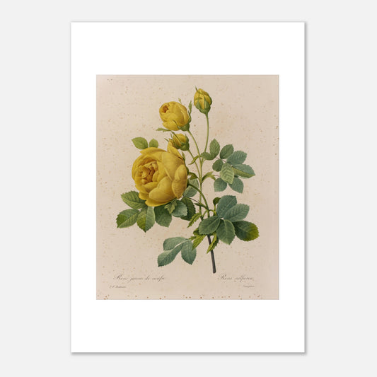 Reproduction de planche botanique Rose Jaune de Soufre par Pierre-Joseph Redouté
