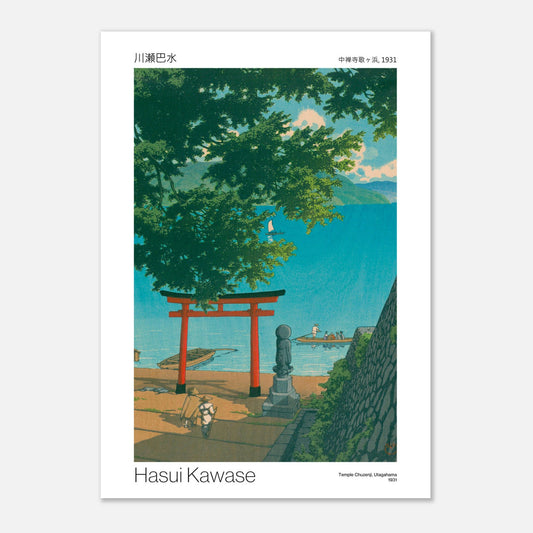 Reproduction paysage jouant sur les contrastes typiques de l'estampe japonaise - Temple Chuzenji, Utagahama par Hasui Kawase