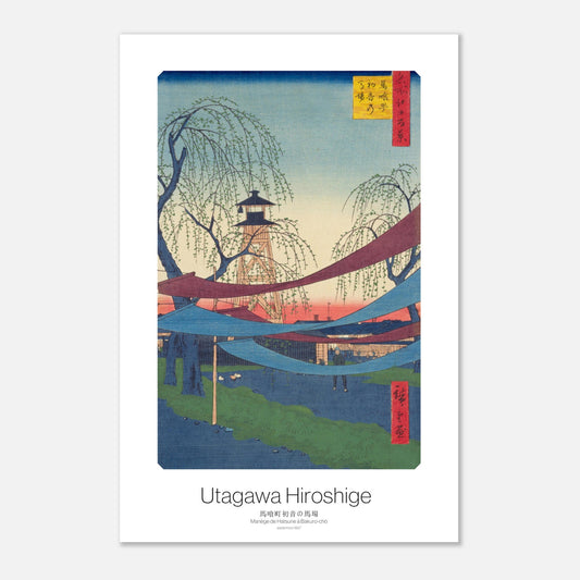 Reproduction ukiyo-e Capturant l'essence poétique de la culture japonaise traditionnelle - Manège de Hatsune à Bakuro-chō de Hiroshige