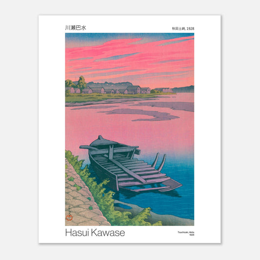 Reproduction de l'estampe «Tsuchizaki, Akita» réalisée par Hasui Kawase en 1928 (titre original : «秋田土﨑»