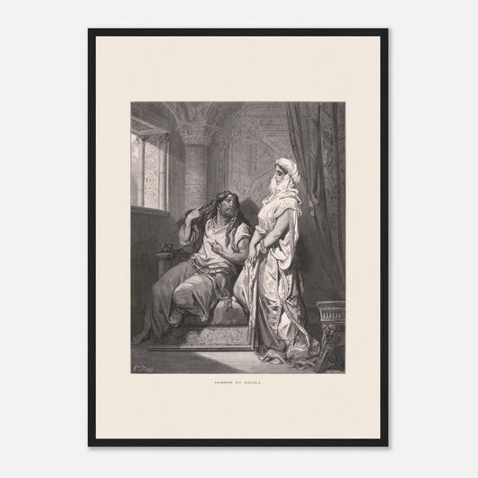 Cette estampe met en lumière le talent de Doré pour les scènes de trahison et de destin, où chaque élément renforce la tragédie et la chute du héros. La référence biblique, Juges XVI, 17, évoque la faiblesse humaine et les conséquences de la trahison.