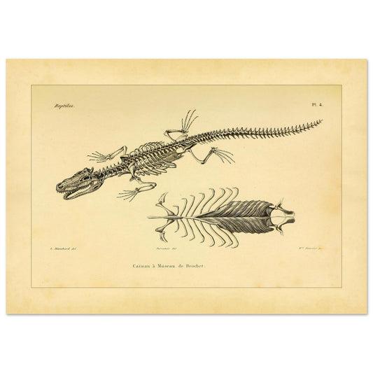 Squelette de Caïman à museau de Brochet : reproduction d'une planche anatomique