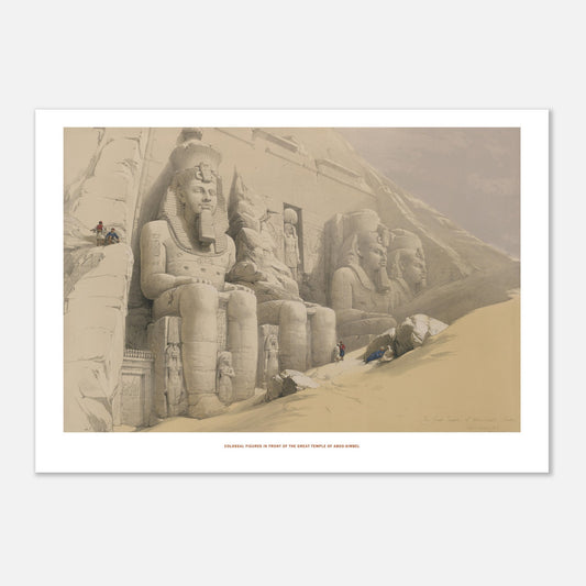 Reproduction d'une gravure d'un dessin de David Roberts (1796-1864) réalisé durant son périple de trois mois qui l’a conduit d’Alexandrie au temple d’Abou Simbel en Nubie, soit un voyage de plus de quinze cents kilomètres.