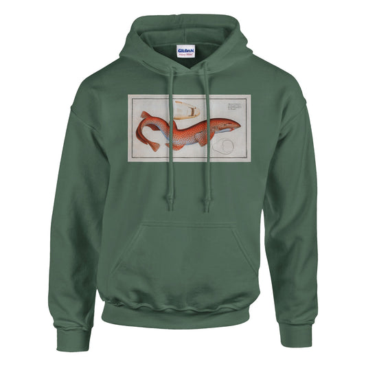 Sweat shirt illustré d'une reproduction d'une planche naturaliste issue de l'ouvrage Ichtyologie, ou, Histoire naturelle, générale et particulière des poissons : avec des figures enluminées, dessinées d'après nature par Marcus Elieser Bloch (1723-1799) et publié entre 1785 et 1797.