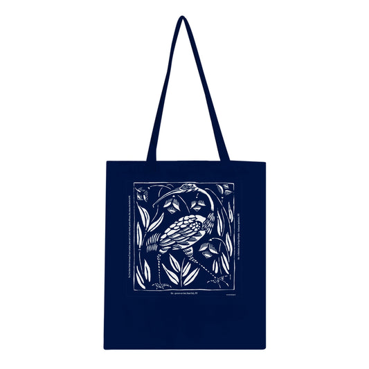 L’Ibis est tiré du recueil Le Bestiaire ou Cortège d’Orphée, écrit par Guillaume Apollinaire en 1911. L’ibis, créature sacrée dans l'Égypte ancienne, symbolise ici la beauté et la force tranquille. Apollinaire, par son poème, nous invite à réfléchir sur la connexion entre l’homme et la nature, et l’idée de la spiritualité qui imprègne tous les êtres vivants. Ce tote bag, inspiré de cette vision poétique, devient une réflexion sur la beauté et la sagesse immémoriale des créatures sacrées.