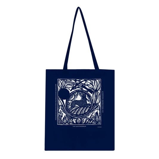 Le Lièvre est tiré du recueil Le Bestiaire ou Cortège d’Orphée, écrit par Guillaume Apollinaire en 1911. Le lièvre, par sa rapidité et son agilité, symbolise la vivacité d’esprit et la fuite face aux dangers du monde. Dans ce poème, Apollinaire nous invite à réfléchir sur la fragilité de l’existence, et la manière dont l’homme, tout comme le lièvre, doit apprendre à échapper aux menaces qui l’entourent. Ce tote bag devient ainsi un symbole de légèreté et de réflexion sur la précarité de la vie.