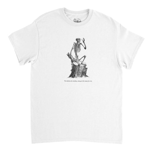Tshirt Curiosité Naturaliste - Squelette de Singe sur Souche d'Arbre