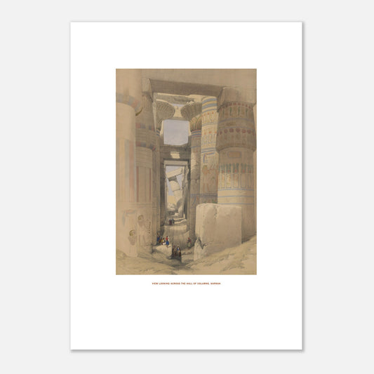 Reproduction d'une gravure d'un dessin de David Roberts (1796-1864) réalisé durant son périple de trois mois qui l’a conduit d’Alexandrie au temple d’Abou Simbel en Nubie, soit un voyage de plus de quinze cents kilomètres.